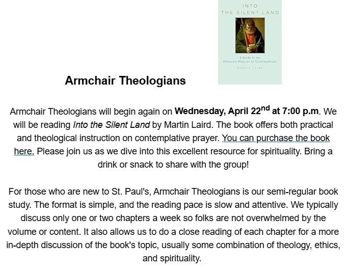 If you'd like to be included on St. Paul's regular e-mail communications, please click the "Sign up" button below to add your name & e-mail to our e-mail distribution list.
